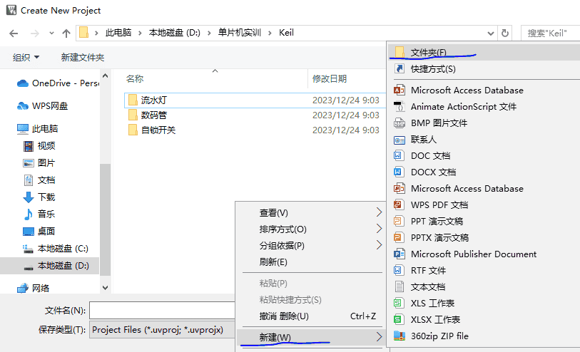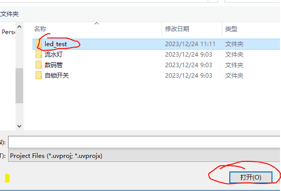 - 在合适的位置,手动创建工程文件夹,以《led_test》为例(按考试要求的位置保存)