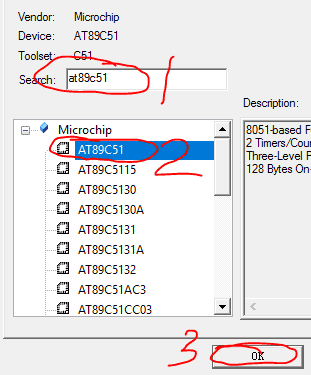 点击保存 - 在Search输入”at89c51”,选中下方的搜索结果,点OK