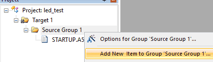 - 在Source Group1上点击右键,选择Add New Item to Group