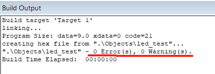 - 查看编译结果,应当是0 Error(s), 0 Warning(s),若有错误和警告,需要根据提示修改代码
