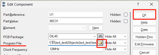 浏览Program File,找到Keil编译生成的可执行程序 -> OK