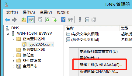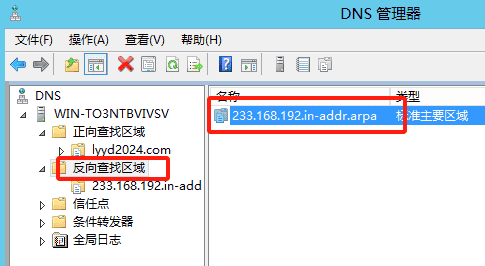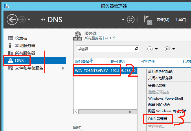 - 选择DNS->在服务器名称上点右键->DNS管理器