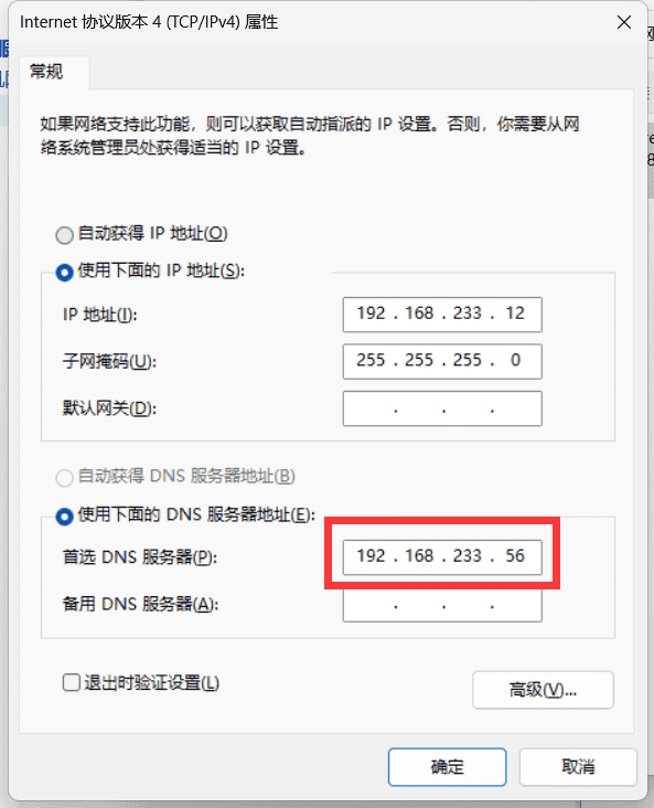 - 配置宿主机网卡DNS服务器为虚拟机IP地址
